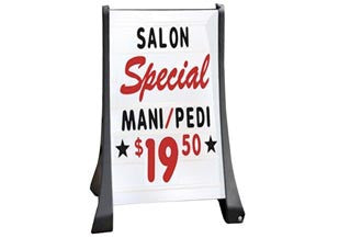 This extra large, Quick Load rolling A-frame sidewalk sign with white, changeable message board; 2-sided. Just Grip-Tip-Roll to move in or out; no lifting or carrying.