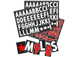 Sidewalk Sign 314-Piece Letters and Numbers Set: 4"; White letters and red/white border numbers on black background. This letter set is for signs with a black face.